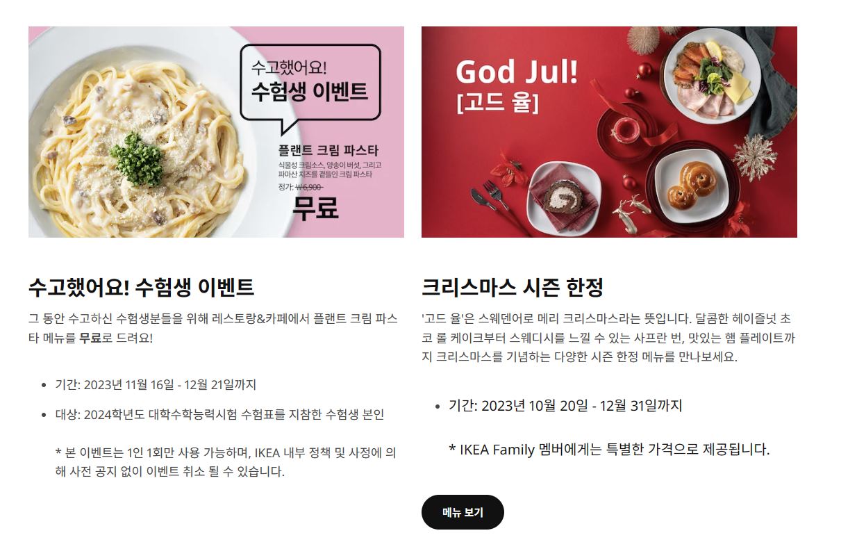 주의할 점은 스웨덴전통 메뉴의 경우,, 평일에 이케아회원일 때 어차피 커피가 무료인데... 만약 회원이 아니면? 20,800원이 아니라 22,300원이라는 거! (그리고 주말은 커피무료가 아니니깐 무조건 22,300원)