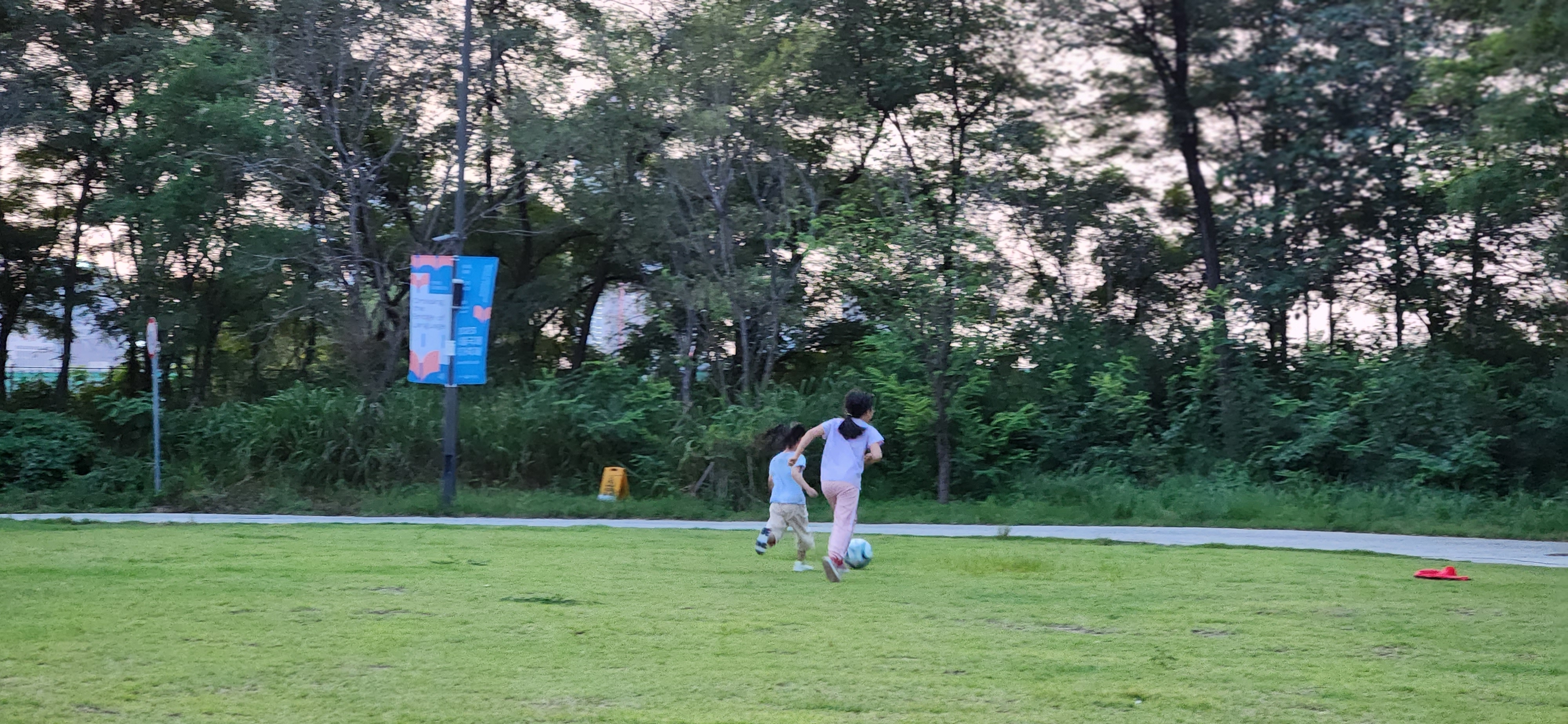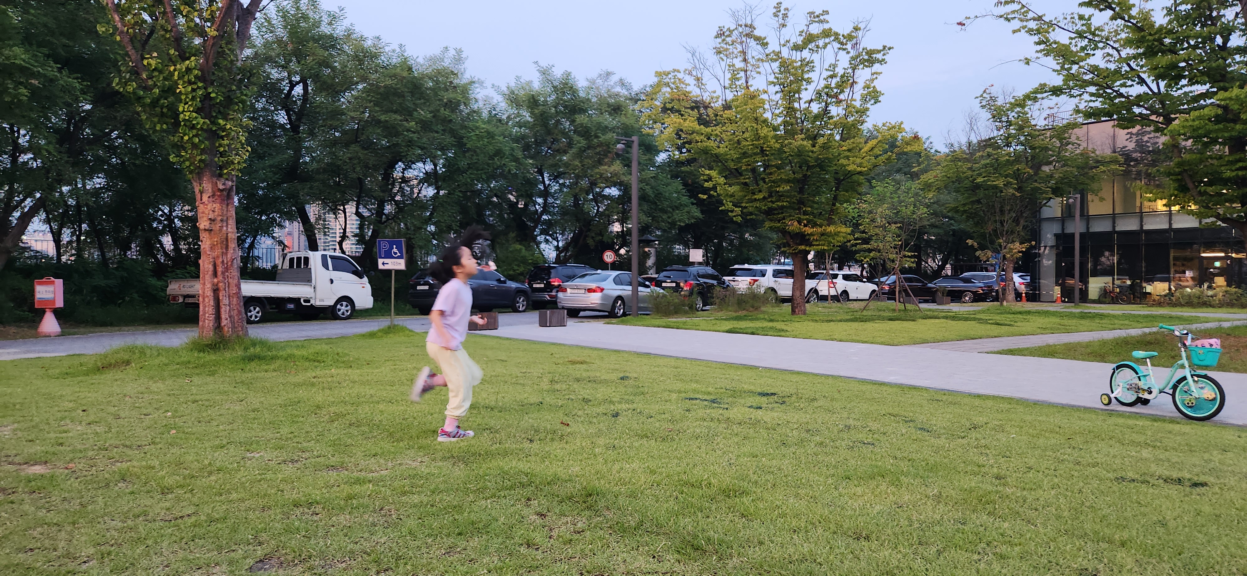 아주 막 넓진 않지만 돗자리 펴놓고 앉아서 여유를 즐길 수 있는 푸릇푸릇한 잔디마당