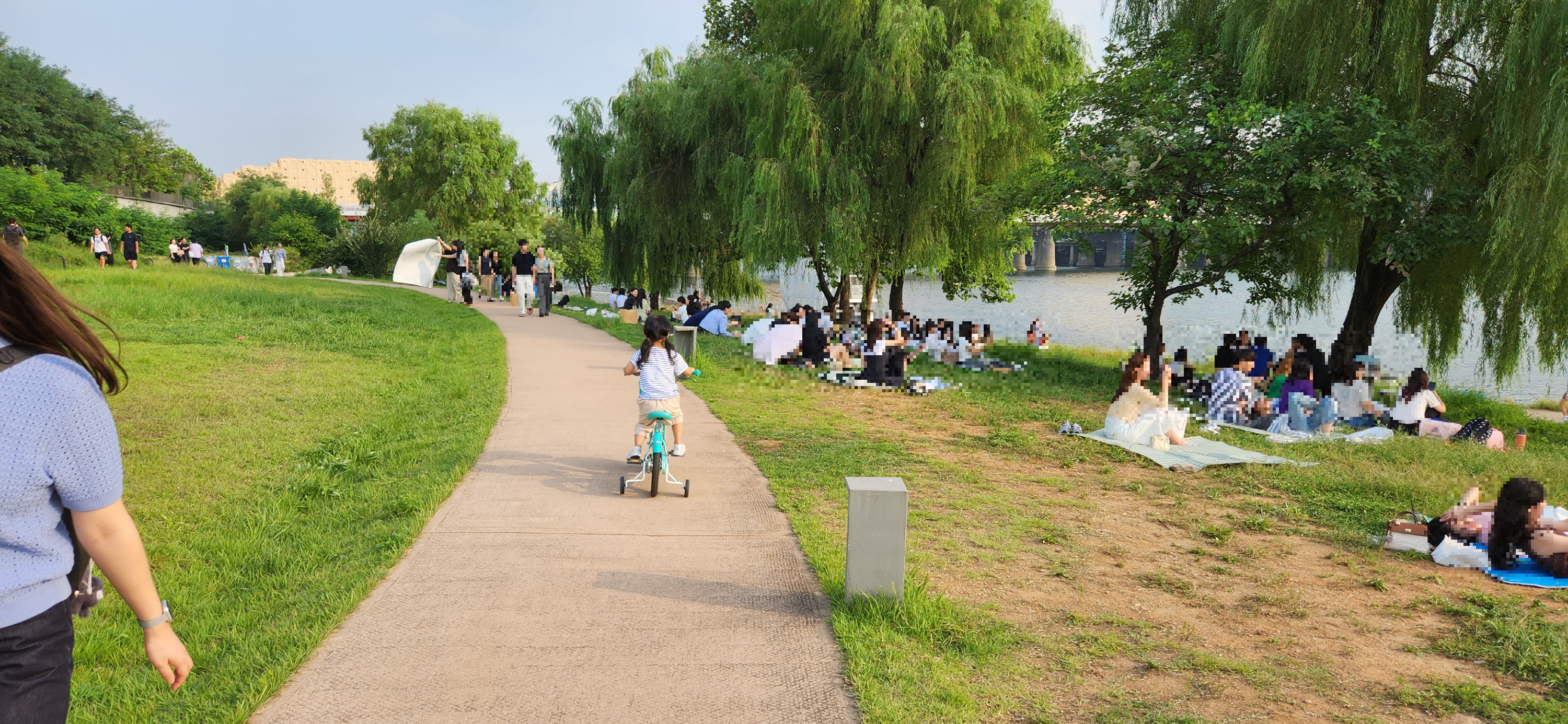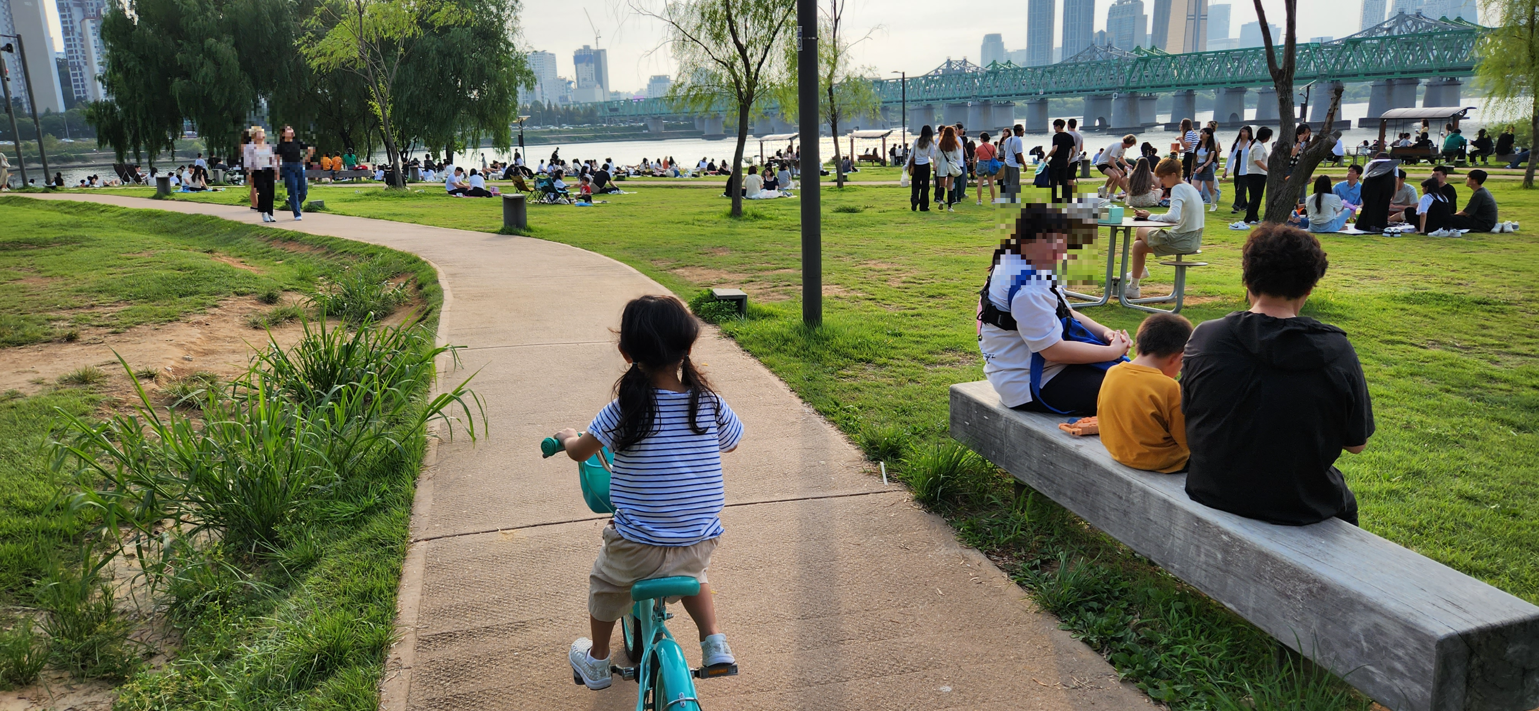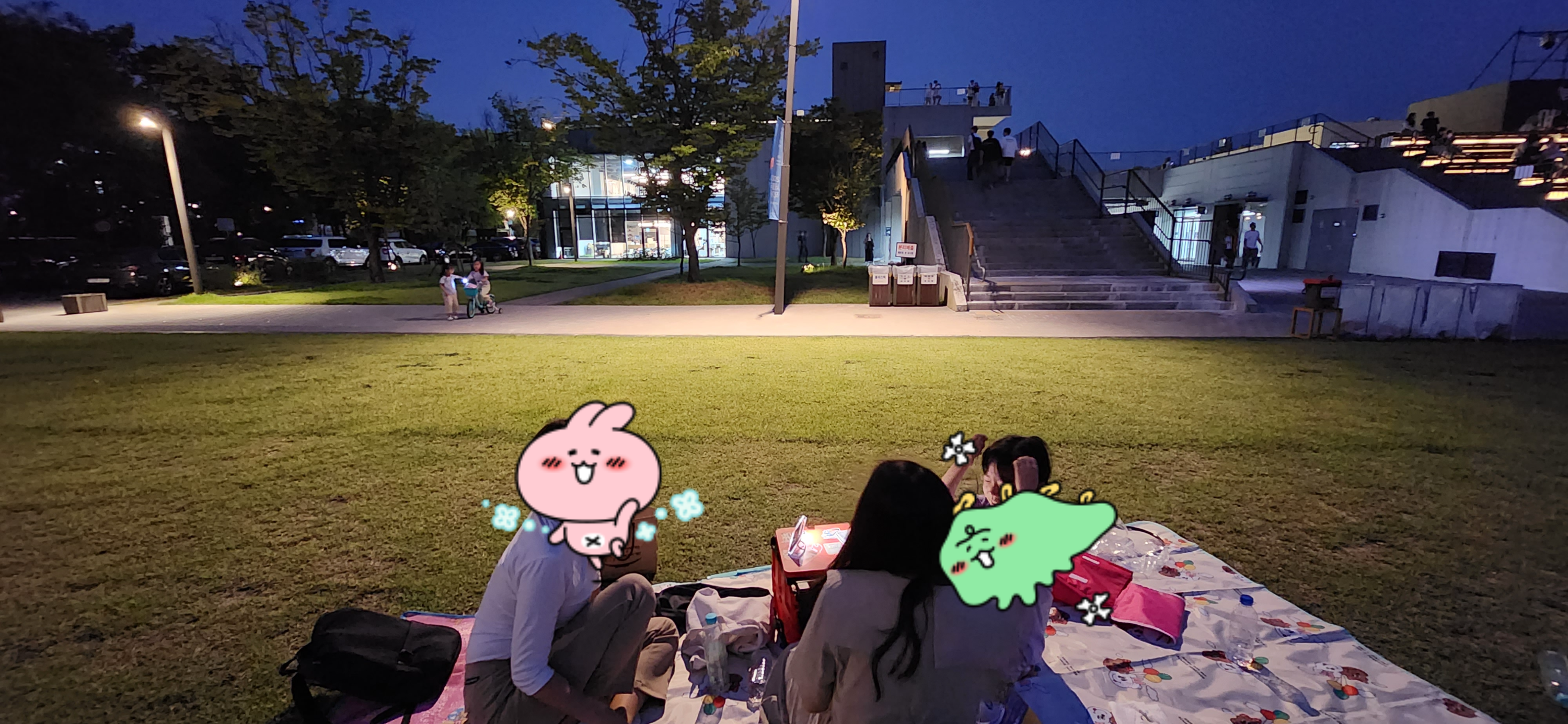 테이블이 있긴 하지만 아주 드문드문 있고 대부분은 돗자리 혹은 캠핑의자 놓고 주전부리와 맥주 한 캔 즐기는 곳.