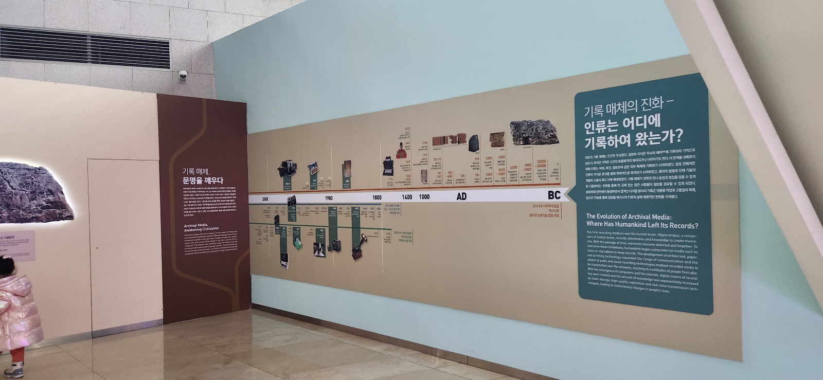 아주아주 옛날 돌에 글씨 파던 것부터, 시대별로 진화되는 기록매체들을 둘러볼 수 있다.