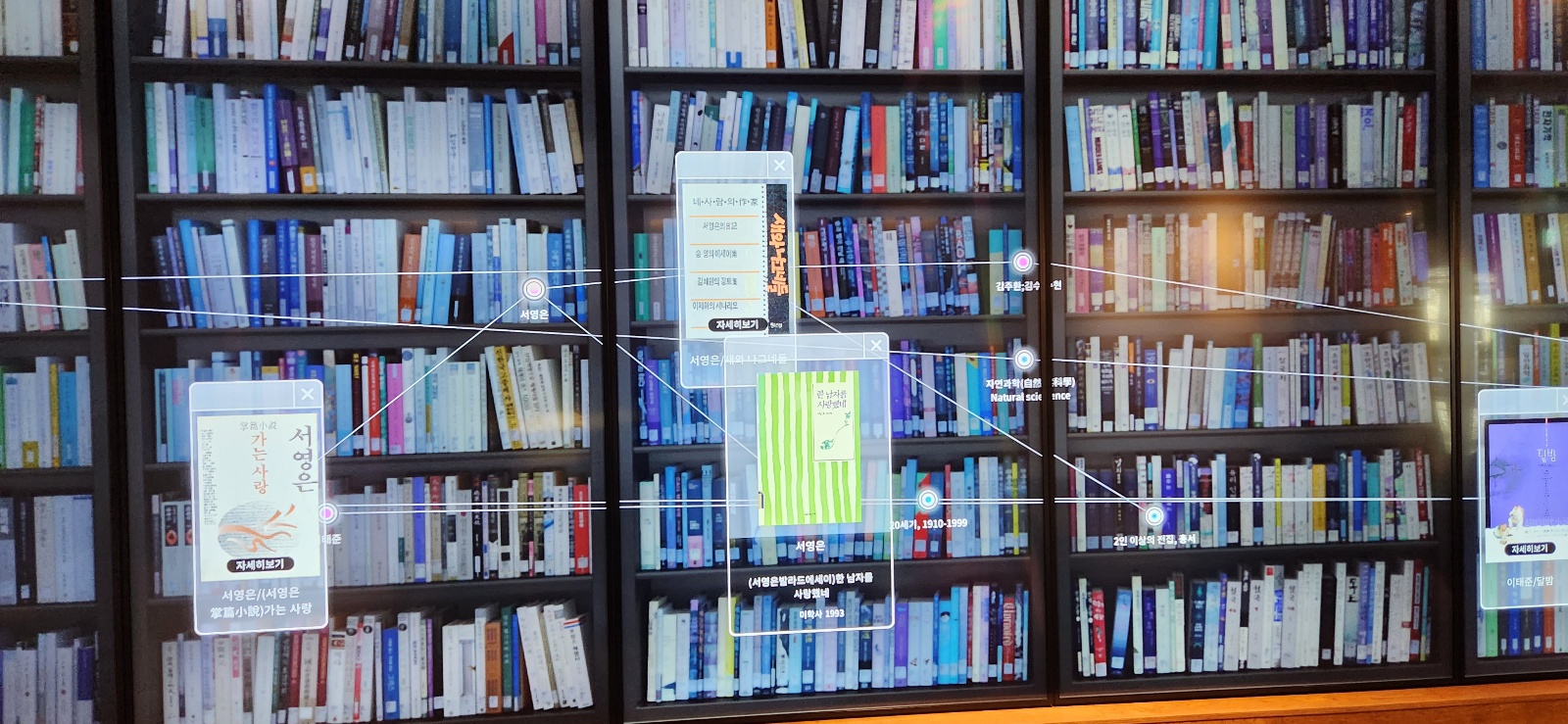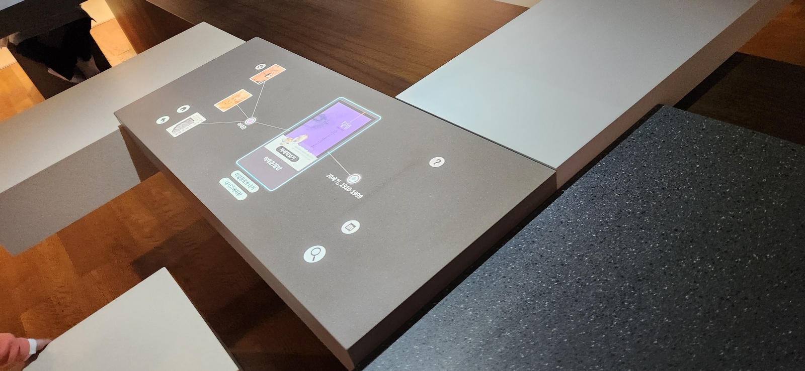자리에 앉으면 책상 위에 터치버튼으로 주제를 정하고 시대별 도서자료를 검색해 볼 수 있다.