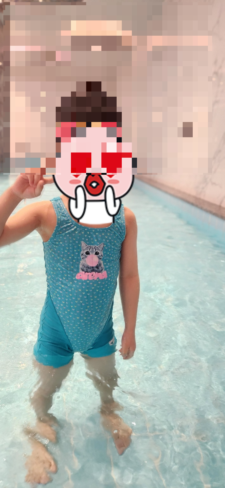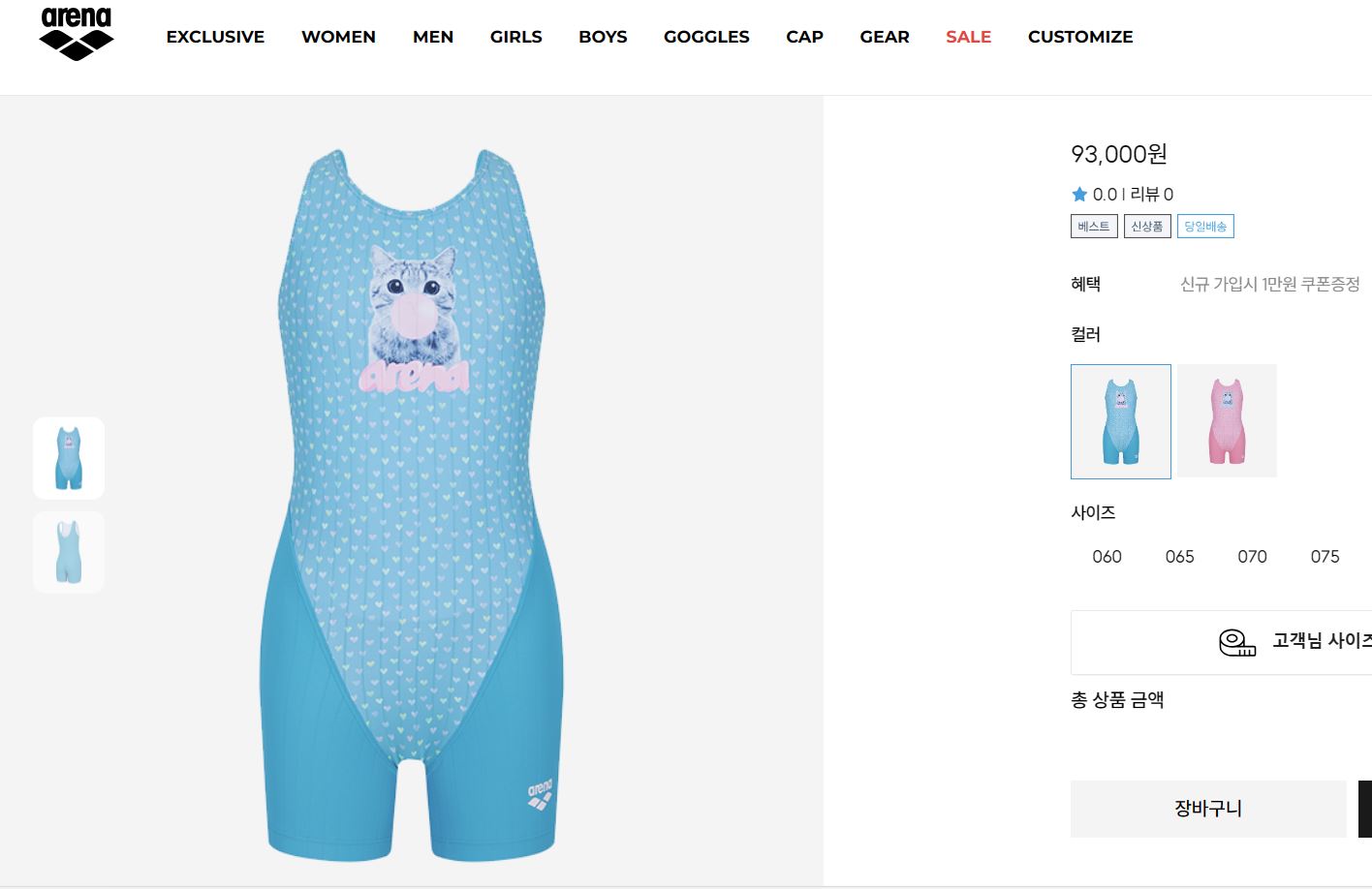 고민의 고민을 하면서 결정한 제품은 고양이가 풍선불 고이는 파란색 반신수영복!!